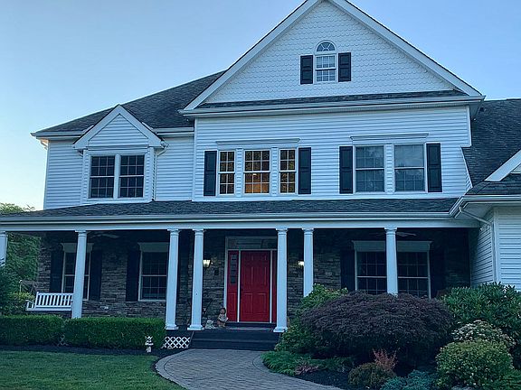 Mountaintop Retreat 29 miles from NYC offers 5,200+sf on 6.96ac with seasonal views of NYC. The main level features a formal LR and DR, butler's pantry, gourmet kitchen, breakfast area with gas FP, great room with wood burning FP and an office. The second story offers a luxurious primary bedroom with sitting area and a balcony overlooking the expansive property. Replete with a beverage station for your morning coffee and a third level office. An ensuite plus three additional BRs and a laundry center. The 2,000+sf lower level includes a rec room, gym and full bath with steam shower and laundry with outdoor access. The jewel of the backyard is the free form pool and rock waterfall, pool house and solar powered shower. Dine on the paver patio or enjoy a cozy fire. Workout on the endurance track, rock climb or hike miles of trails on the adjacent 178 acres of parkland. Grow vegetables in the hydroponic garden will year-round. This level of privacy and natural beauty are very rare!