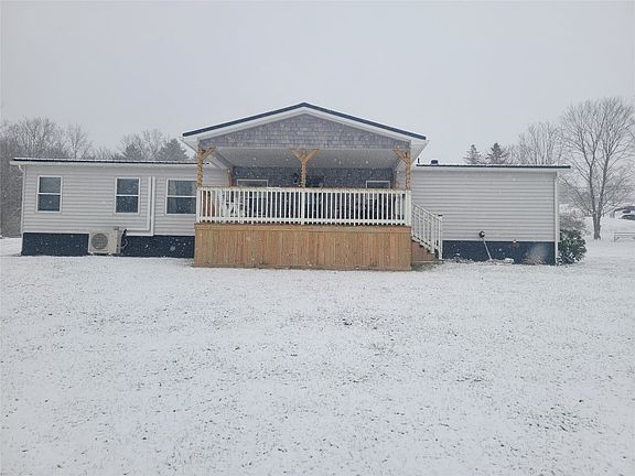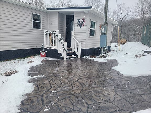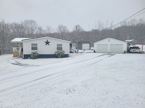 Modern kitchen equipped with essential and modern appliances Living Areas features carpet and vinyl flooring, insulated windows, and a cozy atmosphere. Nestled on a serene 10.32-acre lot, offering a blend of level, wooded, and scenic views. Detached Garage and Workshop features a two-car garage with an oversized 20 x 23 workshop, perfect for hobbies or storage. Additional Structures Includes a shed converter into the ultimate bar and entertainment space. Second shed perfect for all you lawn care toys. Enjoy the enclosed porch, ideal for relaxation and enjoying the natural surroundings. This property combines comfortable living spaces with expansive outdoor areas, making it a perfect retreat for those seeking tranquility and room to explore.