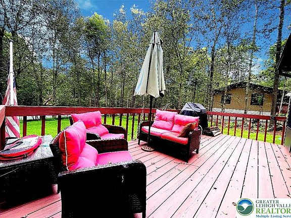 With most furnishings included, all you need to do is pack your bags and enjoy this Pocono retreat. The home also offers a spacious HEATED GREAT ROOM, measuring 33'x21', with a large dining area, bar, and comfy living space—a hub for gatherings. Two well-designed BATHROOMS add convenience for everyone. Step out onto the FRONT DECK to sip your morning coffee and take in the natural surroundings.