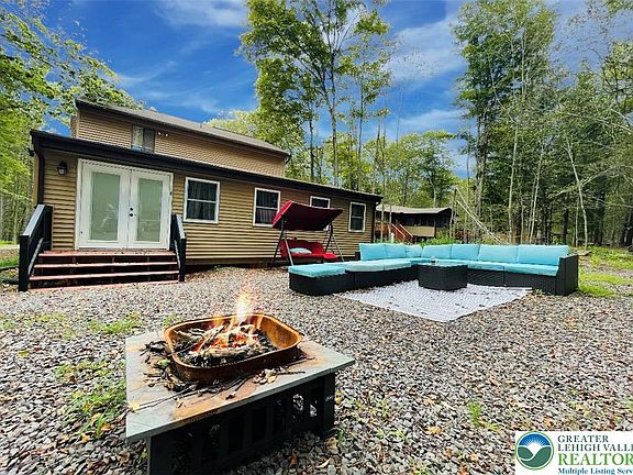 Find your DREAM GETAWAY in the heart of the Pocono Mountains at Big Bass Lake! This BEAUTIFUL 4-bedroom, 2-bath WITHING WALKING DISTANCE TO POOL! This home perfectly combines MODERN convenience with MOUNTAIN CHARM, making it ideal for FAMILY retreats or a smart Airbnb INVESTMENT. Step into an inviting OPEN FLOOR PLAN, perfect for relaxing or hosting guests. The living area features a cozy WOOD-BURNING stone FIREPLACE, perfect for chilly nights. The UPGRADED kitchen boasts STAINLESS STEEL appliances, GRANITE countertops, and plenty of prep space for your favorite meals. A gas-powered HOUSE GENERATOR adds extra security, keeping you prepared for any situation.