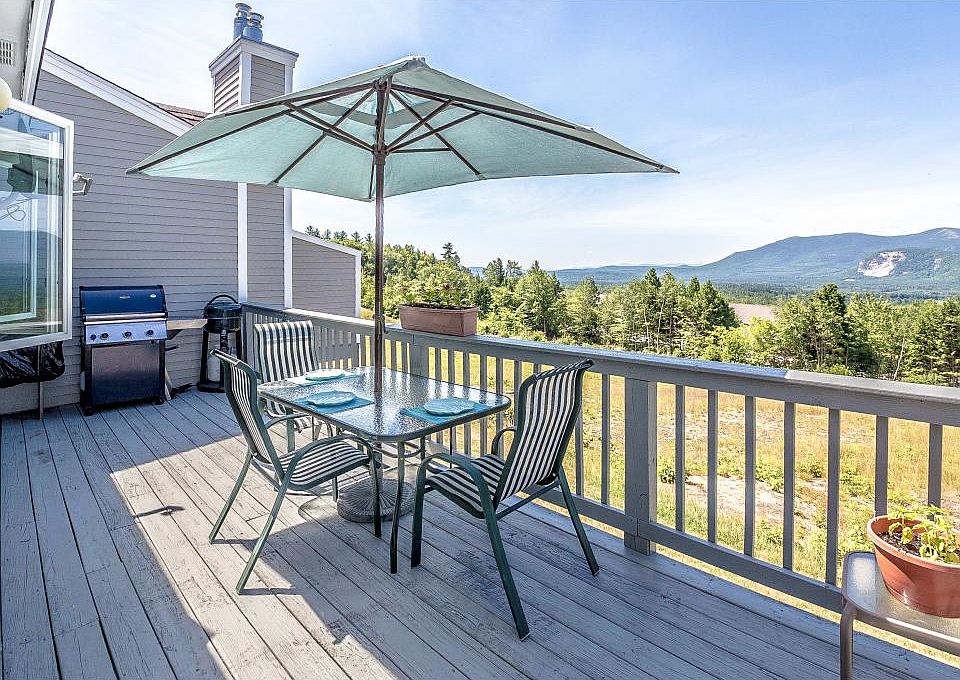 Panoramic views to the Moats and Cathedral Ledge from this upper two bedroom Eagle Ridge Condo. Many upgrades include red oak flooring, granite counters in kitchen and baths. Hearthstone gas stove, Bosch range, custom tile shower in the master suite. Move in and start the fun.