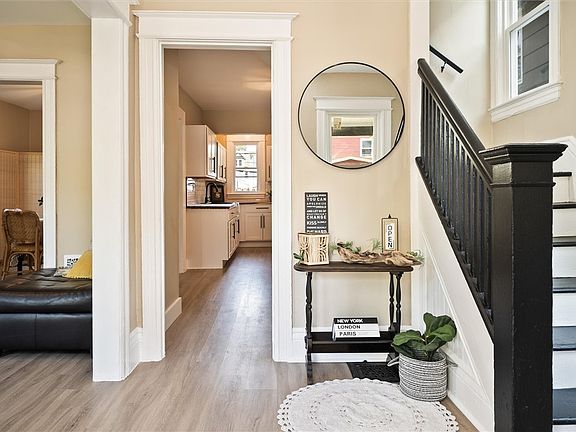Celebrate yourself this holiday season by stepping into this stunningly remodeled home, where no detail has been overlooked! From the new roof to the luxury floors, every inch has been thoughtfully updated to combine style with charm. The heart of the home is the gorgeous kitchen, featuring elegant butcher block countertops, soft-close cabinets, and drawers that make cooking a breeze. Upstairs, the spacious bathroom is a masterpiece of contemporary design, flaunting exquisite tilework & fashionable black fixtures that create a five-star hotel experience. You’ll also discover two finished third floor attic spaces, ready to be transformed into a home office, game room or whatever your imagination dreams up. There is also a basement half bath that has been completely revamped with chic new fixtures. Outside, you'll discover a backyard oasis, perfect for entertaining. A striking privacy wall backs the yard, creating a serene retreat, while a charming pergola offers a shaded space ideal for outdoor dining or lounging. With a welcoming new front porch, upgraded windows and furnace ensuring comfort year-round, this home is the ultimate blend of modern living & thoughtful craftsmanship.