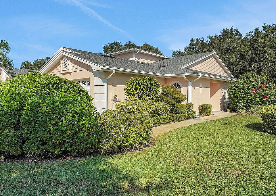 Welcome to this CYPRESSWOOD ENCLAVE 3 BEDROOM END UNIT with lots of trees, greenery and great amenities. This beautiful one-story villa is located in The Enclave neighborhood of Cypresswood Golf and Country Club. Enclave is a quiet and desirable neighborhood located in a 24 hour guarded and gated community. It has an open floor plan that feels warm and cozy. The home has been updated with fresh neutral colors and beautiful floors. The open feel with the view of trees and foliage out the back sliding glass doors is quite enjoyable. The large roomy kitchen has stainless steel appliances, granite counter tops, large pantry, lots of storage and breakfast nook. The large great room has a lot of space for family and dining areas. And it includes two beautiful barn doors which can remain open between the family room and bar/bistro area or closed for privacy. The primary bedroom has a large walk in closet and an additional separate closet. The bath has granite countertops, double vanity, shower and separate soaking jetted tub. Additional highlights are inside laundry room and an attached two car garage with lots of built in storage. The AC was replaced in 9/2019, new roof 8/2023, and new exterior paint in 2024. This is maintenance free living with the HOA fee covering ext. painting, landscaping, tree trimming, amenities and more. Enjoy the Cypresswood amenities of pool, tennis, pickle ball, golf, bar, restaurant and more. All of this centrally located in Florida near Legoland, Disney, Gulf beaches, and Atlantic beaches. A wonderful opportunity to live in one of Winter Haven's most sought after communities.