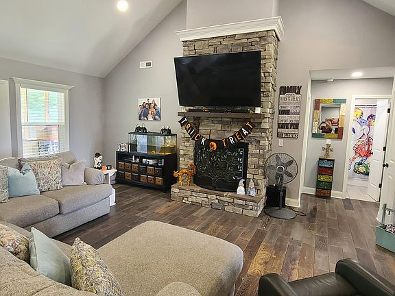 Stunning Custom Built Home on 1 acre lot in Catoosa County! Upgrades are endless on this one! Home features great sized Master Bedroom, Master Bathroom with tiled shower including Rainshower head, body sprayers, and wand, double vanities and a make-up area, his and her walk-in closets, 2 additional bedrooms on the main level with a bathroom in between them, vaulted open floor plan with family room/kitchen/dining all together, handscraped hardwood floors throughout the main level, limestone flooring in the kitchen and laundry room, tile in both bathrooms, beautiful stackstone gas fireplace, coffered ceiling in the dining area, oversized island with storage and granite countertops, farmhouse granite composite sink, USB outlets throughout, LVP flooring in the finished basement including a full kitchen, laundry room, 2 bedrooms, a full bathroom with a tiled shower, living room area. There is a utility garage in the basement with approx. 350 sq ft. Main level has a screened in porch, plus a griller deck, the basement level has a separate screened in porch and patio area. The front yard and both side yards have a water irrigation system, the Main level has a 3 car garage with 8 ft tall doors, plus additional parking. Step into your back yard with a beautiful brand new inground swimming pool complete with a shallow swim-out section for those babies or dogs! There is plenty of privacy with a screen of woods behind the house! This home would be perfect for those seeking to bring your parents home with you or your adult children!! Schedule your showing today before this one is gone! OWNER AGENT