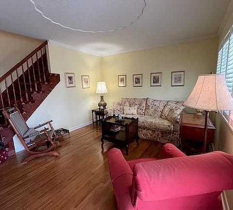 This tidy 2 bedroom, 1-1/2 bath Cape is ready to move in with many recent updates to the home. First floor bedroom and main bath on first floor has a walk in shower. Modern eat in kitchen with ample cabinets, and appliances. Dining room or use for den/office. Hardwood floors, finished basement with w/ bar and 1/2 bath. Low taxes! Fenced yard, detached garage, corner lot,central air and gas heat.