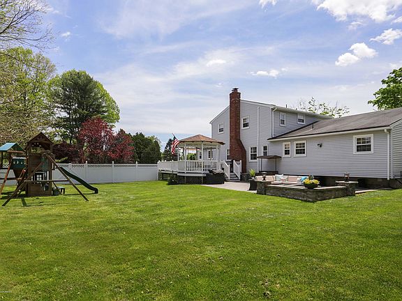 You know when a house just makes you feel good??!!! From the white picket fence to the lg,level lot with fantastic yard,this wonderful custom colonial will have you feeling right at home the second you pull up! Step inside & be amazed at the space this home has to offer! 5 generously sized BR's, a BEAUTIFULLY renovated kitch open to fam rm, & large, fully finished bsmnt! Fam rm enjoys a wood burning stone fireplace for warmth and ambiance on those chilly nights. LR adorned with large bow window & handsome built in's. Spacious master incl en-suite full bath. 2 addl full baths plus a conveniently located pwdr rm right off the deck.Laundry/mud rm on main level! Newer, high efficiency appliances, & HVAC,. Convenient ''smart home'' features such as Hidrawise system controlled 11-zone