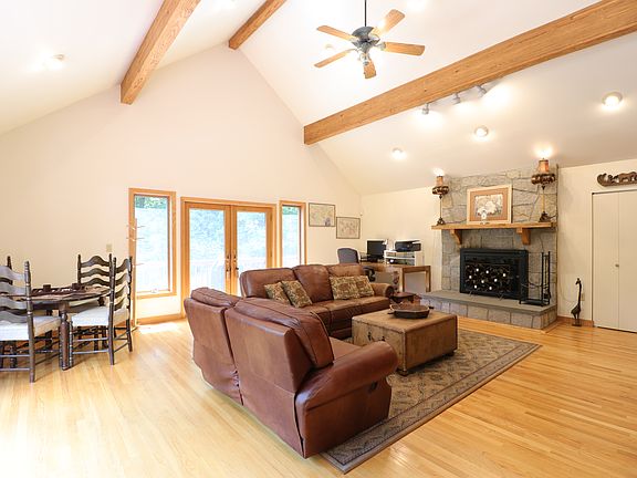 This Contemporary style home flows effortlessly from room to room making it perfect for entertaining or relaxing in your own personal oasis. This 1.7 acre property feels worlds away from the hustle and bustle, yet this gem is only 10 minutes to town and nearby amenities. Living and Family Rooms both have fireplaces. Vaulted ceilings and hardwood floors throughout. Banks of windows allow light to stream throughout, creating a warm and relaxing ambiance. The Eat-In-Kitchen includes stainless steel appliances and loads of counter space. The breakfast bar alone can easily seat 8 with room to spare! Walk-in pantry, laundry room, and full bath round out the first floor. 3 bedrooms on upper level: Master includes walk-in closet, remodeled bathroom with over-sized walk-in tiled and river stone shower and French doors to private deck. On top of all this space, is an In-Law suite which can be accessed from a separate entrance. In-law features kitchen, living area/bedroom with fireplace, full bath, walk-in closet and separate laundry! Picture yourself living in this beauty, grilling or just kicking back on the expansive wrap around deck. Far more details to list - must see to appreciate! 2 car garage, central air conditioning, wired for generator. Quality built with steel re-enforced construction. Lake rights to Lake Zoar with private dock. Convenient location close to I 84 and Route 8. 90 minute escape from New York City. 8 minutes to train. Nearby Jackson Cove offers beach, snack shack, playground, boat launch and hiking trails. Truly a home for all seasons.