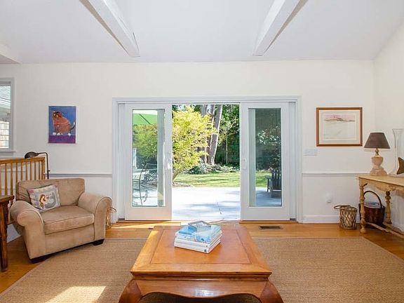 Charm and personality abound in this classic village home located in the very heart of Marion Village. Inner harbor and Silvershell Beach are a short walk away while the historic Sippican Tennis Club is just down the road. The single-level main home has high ceilings and skylights providing substantial sunlight throughout the open space with new sliding doors with southerly views of the private deck, gardens and backyard. The kitchen with peninsula and views of the backyard, is centrally located and open to front and back living areas. The main house has 3 cozy bedrooms, two of which have their own private bathrooms. Above the two-car garage is an in-law/au pair suite with one bedroom, bathroom, small kitchenette and living area with private balcony. The professionally landscaped lot sits on a 1/3 acre and is surrounded by mature trees and gardens.