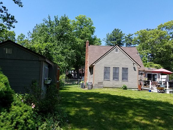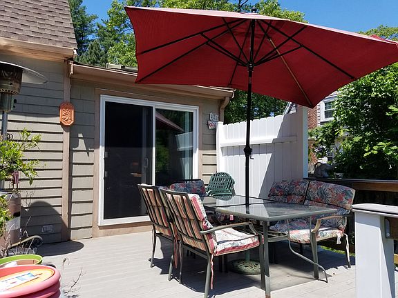 Superb location! This story-book Cape style home will capture your attention at first sight. A distinguished high-pitch roof line and shingle pattern offer tremendous curb appeal. Informal entry into kitchen breakfast space with vaulted ceiling & skylight with slider out to oversized deck. Renovated maple cabinet kitchen granite counters. Adjacent to kitchen is a large addition off the back of the house that could be used as an oversized dining room or family room. Spacious, flat, fenced back yard space. If you enjoy gatherings in the summer, have pets or children this yard is perfect. Formal entry with closet steps into front to back living room with fireplace. Fully renovated full bath and 1 bedroom on the 1st floor. 2nd floor has 2 nice size bedrooms. Hardwood floors through-out. Basement is half-finished with kitchenette and half bath and laundry. Gas heat and hot water systems are newer. Central air conditioning. Walk to commuter train and Greenlodge elementary. Welcome home!