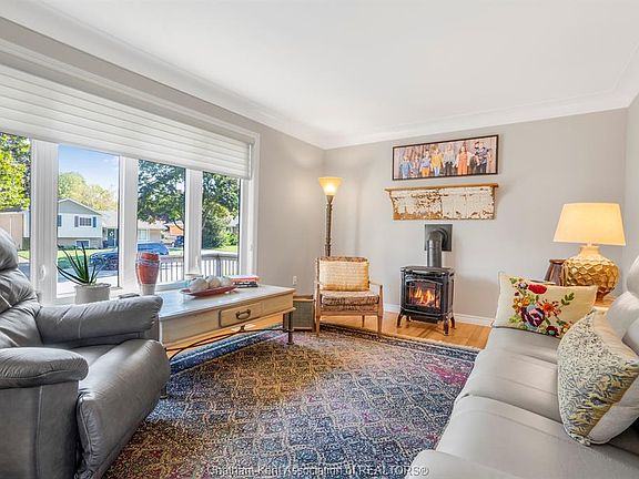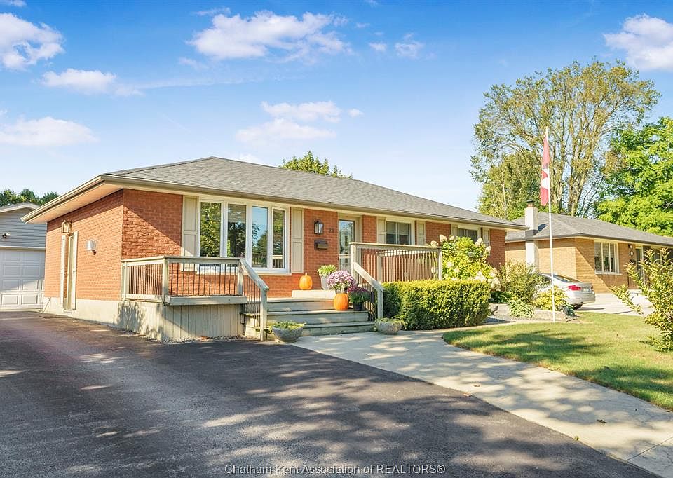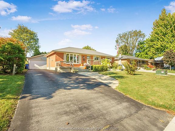 Welcome to this beautifully updated brick rancher located on Chatham’s desirable Southside, just minutes from walking paths, grocery stores, the golf course, and easy access to Highway 401. This charming home sits on a massive fully fenced yard, offering plenty of space to relax, garden, or entertain. Enjoy outdoor living on the large deck and semi-covered patio, perfect for summer evenings or weekend barbecues. A detached double car garage provides ample parking and storage. Inside, the main level features 2 bedrooms, including a very spacious primary, and an open-concept kitchen and dining area with gorgeous white cabinetry. The cozy gas fireplace adds warmth and charm to the living space, creating a comfortable and inviting atmosphere. The finished basement offers even more living space, with a rec room and a possible additional bedroom — ideal for guests, a home office, or hobbies. Situated on a quiet street in a great neighbourhood, this home has been updated throughout and is completely move-in ready. Just unpack and enjoy easy, modern living in one of Chatham’s most convenient locations!