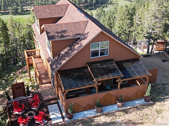 Welcome to this mountain getaway not too far from Denver, but far enough away to enjoy nature and be away from the noise of the city. This newer home has breathtaking views of the mountains! It has 5 windowed sliding doors on the main floor which add a nice touch to bringing the outdoors to the inside. There is a deck off the front room and kitchen and a covered patio off the two bedrooms on the main floor. There is a patio off the walk-out basement which has two sets of double doors. The basement has just been finished except for a room that can either be made into a bathroom or used as a storage room. The rest of the basement is completely finished as of 10/2/25. It is a wonderful space for a family/game room. The well is 1,300 feet deep, and there are water containers in the crawl space that hold over 500 gallons of water that are replenished from the well as they are used. There is an over sized septic system with a capacity of up to 5 bedrooms. Enjoy modern living away from it all!