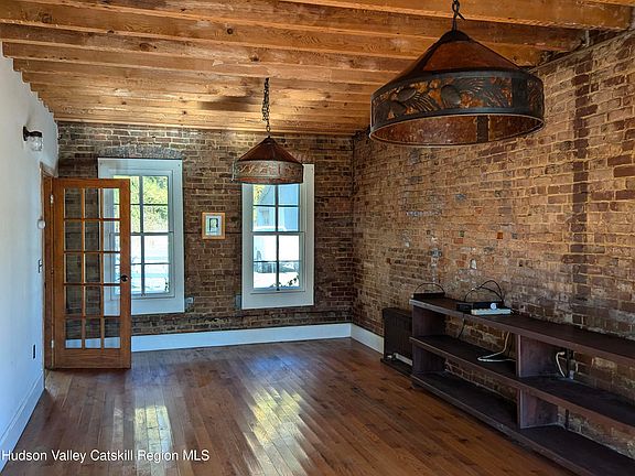 This stunning home is in Trendy Historic Rondout Waterfront district of Kingston. AKA ''Brooklyn North''! With its beautiful, exposed brick walls, extremely high ceilings, nice hardwood floors, essentially two master suites. One with a claw tub bath. The basement which could become your primary bedroom and on-suite bathroom, with the tall windows opening into garden area or your home office/workshop/Studio. Plenty of possibilities here.