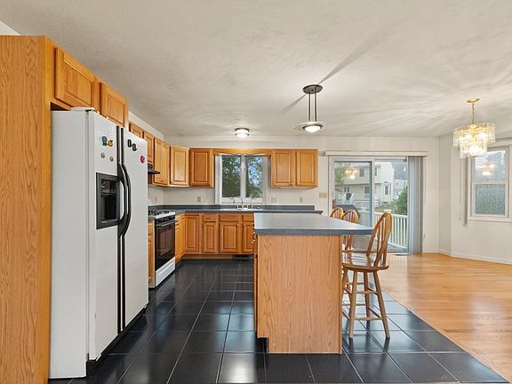 Tucked away on a quiet cul-de-sac, this spacious 4-bedroom, 3-bath home offers a flexible floor plan perfect for today’s lifestyle. The main level welcomes you with soaring cathedral ceilings, a fireplace, and an open layout that seamlessly connects the living, dining, and kitchen areas. The kitchen features a center island, gas cooking, and direct access to the deck for easy indoor-outdoor living. The primary suite includes a private bath, while two additional bedrooms share a full bath with soaking tub. The finished walk-out lower level expands your options with a fourth bedroom, full bath, and versatile living space complete with kitchenette—ideal for guests or extended family. Outside, enjoy a composite deck, porch, sprinkler system, and storage shed, all set on an oversized lot with mature landscaping. Central air, a 2-car garage, and convenient access to highways, schools, and local amenities make this home an excellent opportunity.