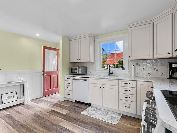 Convenient garageNew flooringNew cabinetsGranite countersAmple outdoor spaceCafe-line dishwasher and rangeCharming cape cod-style home
