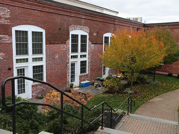 Stainless steel appliances, granite countertops, maple cabinets, 18 ft ceiling, skylight, exposed original brick walls, original rustic roof rafters, and trusses from the old 19th-century mill. Heat, hot water, and hospitality Wi-Fi are included. Additional amenities include mini-split AC units, dishwasher, microwave, secure entry, a clubroom, a fitness room, a bike storage room, washer and 110V vent-less dryer hookups in most units, and up to two assigned parking spaces in a private lot. On-site smartcard-operated laundry facility. Extra storage space is available for a modest fee.