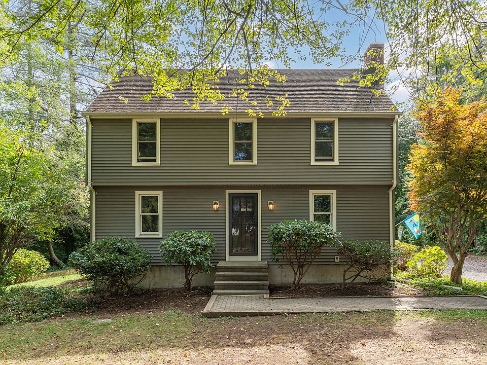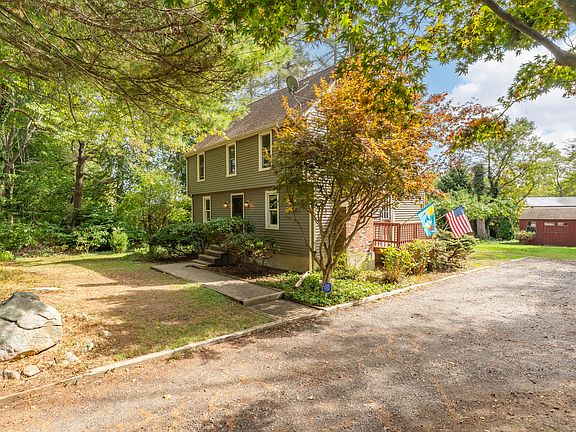 UPDATE: Deadline for offers 10/5 at noon. Welcome to this charming saltbox colonial, brimming with classic New England appeal and solid craftsmanship. Wide plank hardwood floors flow throughout the home, adding warmth and character to its sturdy structure. With durable vinyl siding and a spacious shed for all your storage needs, this property is as practical as it is inviting. The first floor offers a comfortable and functional layout, featuring a large eat-in kitchen with sliders leading to a generous deck that overlooks the private, enclosed backyard--perfect for entertaining or relaxing in peace. A cozy living room with fireplace and formal dining room provide ideal spaces for gatherings, while a convenient half bath with laundry (with new washer and dryer) adds everyday ease. Upstairs, you'll find a primary bedroom that opens to the full bath, and two more well-sized bedrooms (one with walk-in closet), offering plenty of space for family, guests, or a home office setup. This home is ready for new owners to polish and refresh, making it truly their own. Don't miss the opportunity to bring your vision to life in this classic colonial gem!