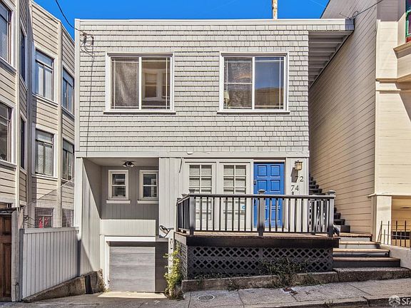 This incredible 2BR/1.5BA luxurious condo in a 2-unit prime Nob Hill location has amazing amenities and views that will take your breath away! This stunning top floor, two-level unit provides exceptional entertaining space with high ceilings, floor-to-ceiling windows providing abundant natural light. The main level includes a spacious open floor plan with remodeled kitchen, breakfast bar and dining area. Direct access to a deck with these amazing views including Mt. Tam, Marin & Golden Gate Bridge view.The lower level includes a primary air-conditioned suite, a walk-in closet, recessed dimmable lighting and luxurious bathroom. The second bedroom, powder room and storage closet complete this level. A deeded 2-car garage and an incredible amount of in-unit & garage storage, add comfort to your lifestyle. With a walk score of 98, enjoy Hyde St. dining, shops and iconic cable car access. Walk to the shops and restaurants on Polk and Union Streets. A captivating San Francisco remodeled condo that feels like single family home! Views, 2 car garage, and deeded roof rights with stunning views - what more can you ask for?? Move right in. Available!! New Roof -