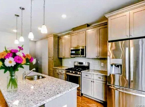 Welcome to this bright and beautifully maintained townhouse-style single-family home, perfectly situated in the desirable Magnolia Park community. This 3-bedroom, 3.5-bath residence offers a modern open-concept layout featuring a stunning kitchen with stainless steel appliances, an oversized granite island perfect for both meal prep and casual dining, and gleaming hardwood floors throughout the main level. The expansive living and dining areas flow seamlessly and open to a private deck ideal for outdoor dining or relaxing evenings. A convenient half bath completes the first floor. Upstairs, you'll find a spacious primary suite with a full en-suite bath and a generous closet. Two additional bedrooms share a well-appointed full hallway bathroom. The finished lower level adds excellent versatility with a large bonus room and another full bathroom perfect for a home office, guest suite, or recreation space. Additional highlights include central air, a 2-car attached garage, and end-unit privacy with extra windows for enhanced natural light. Residents also have access to amazing community amenities including a clubhouse, fitness center, media room, and an in-ground pool. Located in the Middletown School District and just minutes from shopping, dining, local markets, and the train station (only 7 minutes away), this home offers the perfect blend of comfort, space, and convenience. Tenant responsible for first month's rent, one-month security deposit. Don't wait homes in Magnolia Park go fast. Schedule your showing today!