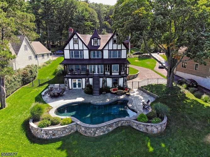 This gorgeous Tudor style Lake Mohawk home has everything you could need! Lakefront living at its very finest. Situated on a quiet parkway, with manicured grounds, stunning sunsets, amazing views, Gourmet kitchen, dining room, open living room, luxury master suite, and 4 additional large bedrooms. The luxury custom finished walkout basement was designed for entertaining, and includes a full bathroom. Gorgeous inground saltwater gunite pool and large boat dock with boat lift. Geothermal heating is incredibly cost effective and a huge bonus. Tons of storage in the custom built-ins found throughout the home! An oversized two car attached garage and additional parking. Live, work and play from your own lake paradise, and enjoy all that Lake Mohawk has to offer. Boating, swimming, fishing and so much more.