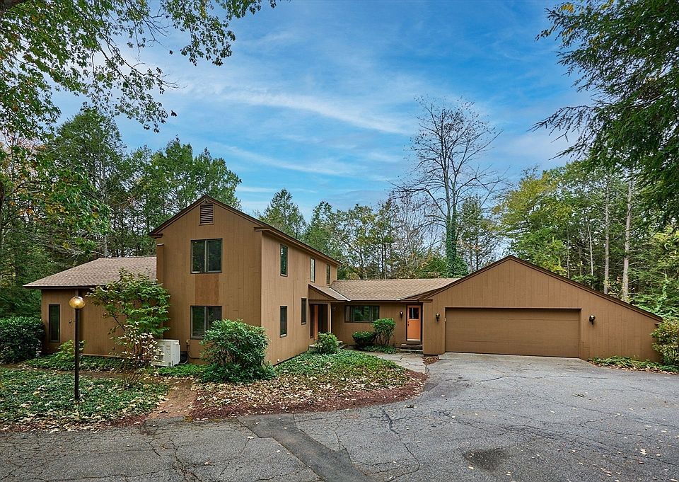 A rare offering built by renowned builders Cooke & Jones, this contemporary gem combines architectural artistry w/ comfort in a prime location. Designed for effortless indoor/outdoor entertaining, the home boasts a circular flow, 2 wet bars, sliders to private patios, and a timber-beamed cathedral ceiling Great Room w/ expansive glass & a dramatic hearth. Off the kitchen, a 3-season screened porch welcomes relaxed mornings. The 1st-floor private primary suite includes a solarium w/Jacuzzi, open tile shower, dbl. vanity, & WIC. Main-level blue stone & hardwood floors compliment cherry open-riser staircases, with additional finished space & wood stove in the basement. Mini splits on all levels. An oversized garage fits 2 cars including extra space for lawn equipment. Wander woodland paths to 16x27’ screened Picnic House w/ electric. With 7 RMs, 3 BRs, 3.5 baths, abundant storage, & bordering a Wildlife Sanctuary, this 3.94 acre home is a private retreat crafted for living & entertaining.