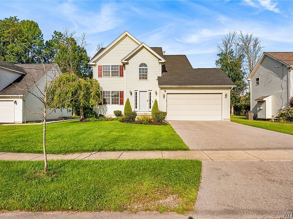 Getzville stunner just hit the market in Amherst! This beautiful colonial home with a 2 story foyer, gives you 3 bedrooms, 2.5 bathrooms, and a roomy 1511 sq ft of living space. The first floor offers dining room, kitchen, breakfast area, and family room with surround sound speakers. The kitchen comes equipped with refrigerator, oven/stove, dishwasher, and microwave. This peaceful home, with a professionally installed security system, also boasts fenced yard and concrete patio for backyard entertainment. 8’+ basement ceilings is excellent for any future upgrades for a fully finished basement. Many recent updates with a new roof (2024), front entry door (2023) and central air (2020), to name a few. Located on Miller Rd in between Millersport Hwy and Dodge Rd in the highly-coveted Williamsville School District , this home is zoned for Heim Elementary School, Casey Midday School, and Williamsville North High School. Open House 11am-2pm Saturday 8/26… 2nd Open house 12-3pm Sunday 8/27; Offers due 8/31 by 5pm.