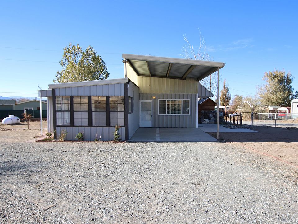 Adorable 1 bed, 1 bath home with a large kitchen & hard flooring throughout on a corner lot that is over 1/4 acre. Metal siding & metal roof help this property to be low maintenance. Extra large carport to fit your RV & a shed/workshop with 220V. Property also includes a greenhouse with attached shed with power, great additional workshop or storage space. Don't miss out on this cozy place!