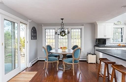 With its exceptional Nichols Road location, this much admired Gambrel is steps to Sandy Beach and Little Harbor. Step inside to discover a gracious home filled with architectural detail and character. Spacious foyer entry, gleaming hardwood floors, abundant natural light. Open floor plan, beautifully updated kitchen features custom cabinetry, soapstone counters, marble backsplash, vaulted ceiling, skylights and an office area with custom built-ins. The kitchen opens to an expansive deck and private back yard. There is a formal dining room ideal for family gatherings, a fireplaced living room with original "king pine" wood paneling, and sitting room. A sun drenched family room with a wall of glass overlooks seasonal water views of Little Harbor and opens to a sun porch with custom painted murals. The master bedroom suite with an updated bath, features a private deck with waterviews. There are 2 additional large bedrooms, bath, plenty of closet space, 2nd floor laundry. Coastal living!