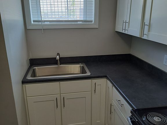Rent includes hot water and city water/sewer; tenants are responsible for electricity. Shared coin-operated laundry is available in the basement. Ample off-street parking available. A small dog or cat may be considered for an additional fee.