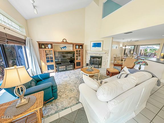 Beautiful and well maintained 3 Bedroom / 2.5 bathroom pool home located 1/2 block to the pristine ''no drive'' beach access in sought after Ponce Inlet!! This charming move-in ready beachside beauty is freshly painted inside & outside and boasts a new roof in 2022. Lovely mature trees, tropical landscaping, a classic paver driveway and great curb appeal welcome you to this beautiful home! The light & bright open floor plan boasts 1938 sq. ft. of living area and nearly 2,500 sq. ft. under roof. Interior features include a spacious great room with soaring ceiling and a cozy gas fireplace. The large fully-equipped kitchen has a gas stove and ample cabinet & counter space. The spacious first floor primary suite has a walk-in closet, sliders to rear patio, and an awesome updated primary spa like bathroom with marble vanity top, soft close drawers, dual sinks, jetted tub & large walk-in shower. There is also a door leading to the pool/patio area from the primary bathroom for convenience. Upstairs two generously sized guest bedrooms (one of which is loft style) feature walk-in closets and an awesome Jack and Jill bathroom, providing comfort & convenience for your friends/family. The convenient half bathroom off the main living area has been updated adding coastal charm. Lush flowering landscape & privacy fencing creates a beautiful tranquil setting to relax and enjoy your private back yard with jetted freeform splash pool. Hear the ocean waves, feel the ocean breeze and smell the salt air from the luxurious outdoor living space. There are two decks, one upstairs and one downstairs. The outside hot/cold shower is perfect for rinsing off after beach time!! New sliding doors in 2021. New 40 gallon hot water heater in 2024, storm shutters on select windows and a transferrable termite bond provide added peace-of-mind. Walk or bike to the historic Ponce Inlet Lighthouse & Jetty Park, Marine Science Center, waterfront restaurants with entertainment, pickleball courts, marinas, charter fishing, parks, dog beach and much more!! Enjoy Florida coastal living at its finest!!