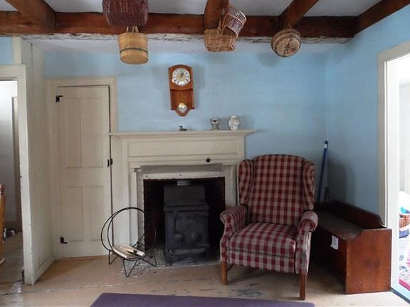 Charming as can be, 2 bedroom, 1 bath center chimney Cape with an attached 19x13 carriage house. Wide pine floors, exposed beams, spacious rooms, fireplace in the kitchen and living room, 16x10 screened porch on the back overlooking your own pond. Pond has been used for swimming and skating thru the years. Great commuter location.