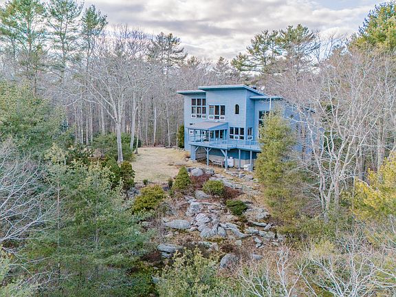 Your private getaway with panoramic views awaits — enjoy first floor living and experience Alta Vista on 17.24 acres at Via Tasso. Just a short walk to Old Ferry Landing and a short drive to nearby Morse Cove Boat Launch, Via Tasso offers public water access on the Kennebec River. Private driveway opens up to reveal this window-lined home boasting contemporary architecture and plenty of potential. Rockwalls and perennial gardens usher you into this one-of-a-kind home. Enjoy the ease of entertaining in the open kitchen, dining and living room with brick fireplace and sliding doors that flow into the screened-in deck and balcony — perfect for savoring morning coffee or evening drinks. The kitchen and dining feature earthy teracotta tile floor, granite countertops and island with bar seating. Laundry room with pantry off the kitchen and entry allows you to stop messes in their tracks. Small hallway leads you to a quaint bonus room/home office, full bath with standing shower and a large first floor bedroom that could serve as a primary bedroom. First floor is rounded out with a bonus space off the living room with its own separate entrance that could serve as a home office, guest quarters, or an in-law apartment. Upstairs, you'll find an open living space with mezzanine balcony overlooking the living room below. Compact room off the mezzanine features built-in ironing board. Upstairs is complete with primary bedroom with ensuite bath and standing shower, walk-in closet and built-in closet spaces. In the full basement you'll find ample storage space, walk-in wine room and newer oil-burning furnace. Enjoy the peace of mind that comes with an automatic full house generator. Don't miss the opportunity to steward this incredibly unique property — revived it could be the centerfold in a magazine. Just 11 min. to downtown Bath, 13 min. to Sebasco Harbor Resort, 19 min. to Popham Beach and 22 min. to Maine Street Brunswick. Midcoast Maine at your fingertips!