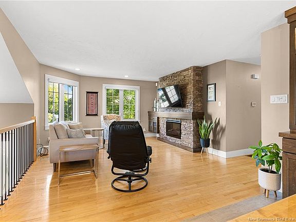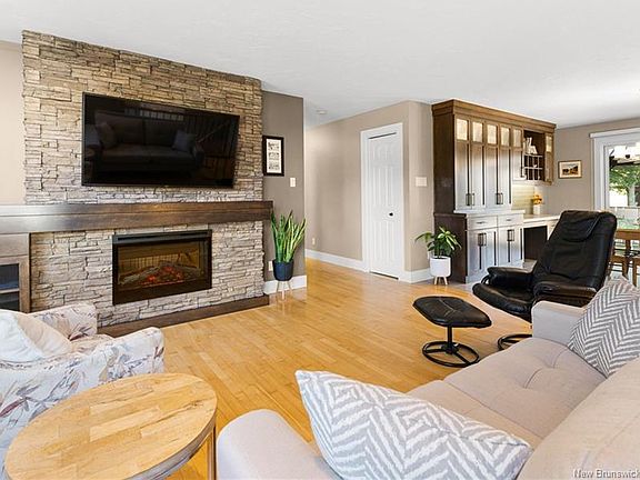 Welcome to 72 Pelagie in Dieppe. This meticulously maintained home with FULLY DUCTED FORCED AIR CENTRAL HEAT and an ATTACHED DOUBLE GARAGE has been tastefully updated through the years and radiates pride of ownership. The bright, open-concept main level features an impressive kitchen with contemporary shaker cabinets, a quartz island, KitchenAid stainless steel appliances, new ceramic tile, and ample storage, creating the ideal gathering place for family and friends. The dining area flows seamlessly into an expansive back deck and screened gazebo, overlooking a manicured, fully fenced yard with easy-care perennials, perfect for outdoor living. Inside, the living room features a striking stone wall with a built-in electric fireplace and a custom wood mantle, blending warmth and modern elegance. Hunter Douglas window coverings, wired speakers, and an alarm system add comfort and security. Down the hall are three generous bedrooms and a renovated, spa-inspired bathroom with in-floor heating, a washer and dryer tucked behind double doors, a quartz vanity, a full wall mirror, custom cabinetry, modern lighting, and porcelain tile. The lower level, featuring oversized windows, expands your lifestyle with a spacious family room and wet bar, two additional large bedrooms, a full bath, and ample storage. Outside, enjoy an extra-wide paved driveway and easy access to ATV trails at the end of the street. This move-in-ready home truly has it all. Equalized billing for heat and lights $397