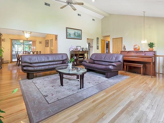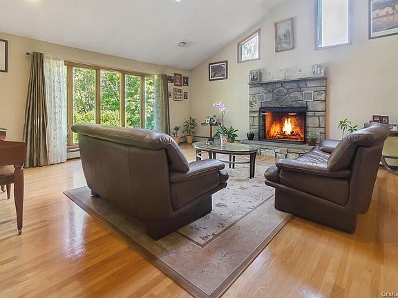 Welcome Home! This light and bright custom contemporary home situated on a manicured almost acre has been lovingly maintained and just waiting for you. Just off the entry foyer, the spacious living room with cathedral ceiling and stone fireplace is the perfect spot to relax or entertain. The dining room has slider to a large deck and the eat in kitchen offers generous counter space. A master bedroom with bath, two additional bedrooms and a hall bath complete the main floor. The lower level features a family room with fireplace & sliders to back yard, a full bath plus extra space that can be what you make of it, are you looking for that home office, perhaps a gym? A laundry room with separate entrance completes the lower level and the utility room is located in the two car garage. Convenient to shopping, schools, recreation, parks, train, Route 9A & the Taconic State Parkway. This home offers municipal water, sewer & natural gas. Taxes do not reflect Basic NY Star Rebate of $2,150.