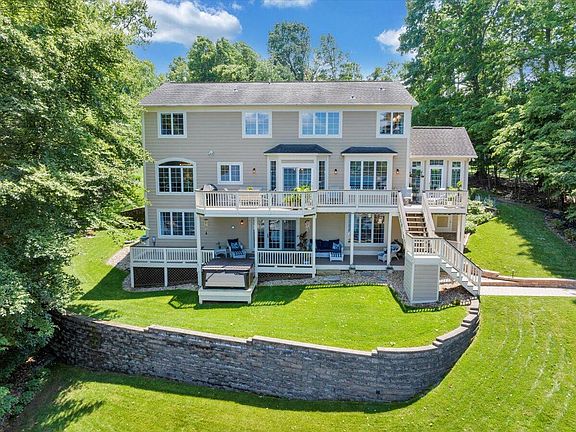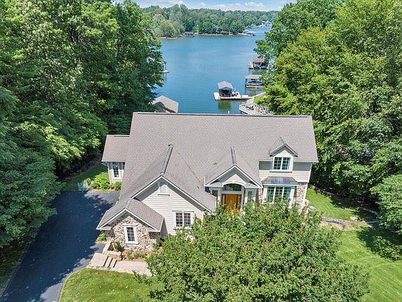 Nestled in one of the most convenient and desirable locations on Smith Mountain Lake--both by land and water--this beautifully crafted home offers the perfect blend of comfort, serenity, and year-round enjoyment. Located in the sought-after Waterfront Community, this three-level residence features panoramic sunrise views over deep, tranquil waters and sunsets that glow warmly from the enclosed sunroom. Thoughtfully designed for both everyday living and entertaining, the home offers generous living spaces, allowing for privacy and flexibility when hosting family and friends. Step outside onto the expansive 824-square-foot deck or unwind on the covered rain porch below--perfect spots to watch the seasons unfold and take in the ever-changing lake view. The home's quality is immediately apparent built with exceptional attention to detail and enduring craftsmanship. Beautiful Tennessee granite stone steps lead through landscaped grounds to a private dock in a quiet, deep-water cove, ideal for boating, fishing, or simply soaking up the peaceful surroundings. Additional features include a saltwater spa (hot tub), mature landscaping, and ample outdoor space to relax and reconnect with nature. Whether you're seeking a full-time residence or a weekend escape, this lakefront gem offers timeless charm, unbeatable views, and the peaceful lakefront lifestyle you've been dreaming of.
