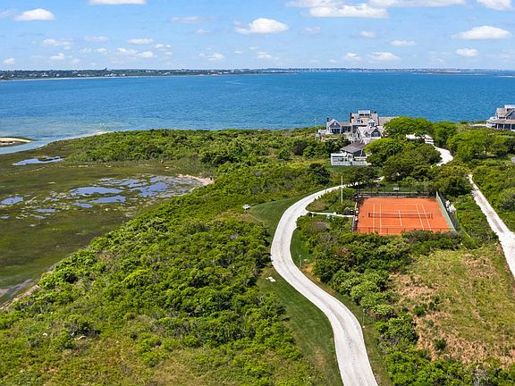 6+ acres of the most spectacular waterfront on Pocomo Point with abounding views across the harbor to Coatue and Town. The setting is unmatched on Nantucket with over 400' of coastal beach where your boat could await you just off the shore. A winding shell drive descends from a higher elevation looking over the Medouie Creek estuary, weaving past the tennis courts and cutting garden to a Carriage House. The Carriage Guest House and Studio frame the pool with a terraced patio that leads to the Main House. There is a fantastic barn building with room for 3+ cars and a charming gazebo in the cutting garden. A path at the edge of the lawn leads to the beach stairs. Changing tides and light with coastal breezes make the experience of this property truly exceptional.