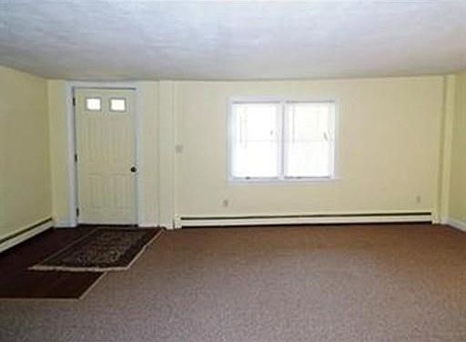 I will be at the apartment SATURDAY, SEPT. 30 from 12:00-12:30PM & on SUNDAY OCT.1 FROM 6:00-6:30PM. Please come at that time if you are interested in seeing the rental. No need to contact me to tell me you are coming...just show up! Spacious top floor three bedroom unit that boasts a kitchen with both an island and a dining area, a living area with wall to wall carpeting, washer-dryer hookups in unit , and it's own deck located on a country road with space to roam and with all the country charm. No Pets Please.