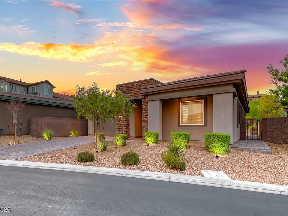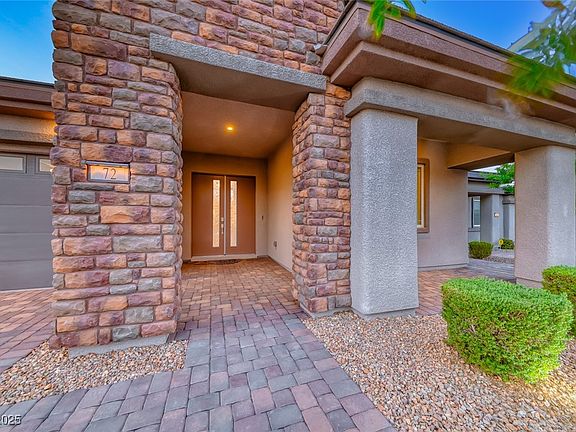 Beautiful single-story 3 bedroom , 2 bath home in the gated community of Outlook at Lake Las Vegas, backing to Reflection Bay Golf Course.This residence features luxury vinyl flooring throughout, soaring 10’ ceilings, and a long driveway on a spacious, private lot. The gourmet kitchen boasts stainless steel appliances, double ovens, custom backsplash, and walk-in pantry. The primary suite is separate from other bedrooms, offering backyard access, a large custom walk-in closet, and a spa-like bath. Large laundry room with sink and cabinets accessible from the primary closet. Enjoy a large covered patio perfect for entertaining. Lake Las Vegas, recently voted Best Master Planned Community in Las Vegas, offers a 320-acre lake with water sports, fine dining, and outdoor concerts—making it one of the most beautiful communities in the valley.