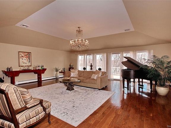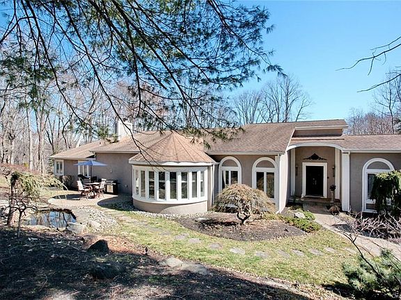 This sprawling Ranch style home has gorgeous seasonal views of the water through the many walls of windows throughout the whole home. The details in this home are breathtaking, you will think you are in a museum when you see the carved doors and stained glass lights. Make sure you click on the tour to see more photos. When you drive down the long driveway and get a glimpse of the views you will immediately feel a sense of peace. The carved wooden doors greet you as you enter the home and welcome you into the grand living room which has an entire wall of windows! It takes your breath away. The massive kitchen has 2 islands and wide plank wood floors, picture yourself eating breakfast while looking out onto the waterfall and fish pond, what a great way to start your day. The den has gorgeous wooden built ins that came from a Brownstone in NYC, the amazing detail on the fireplace and doors will have you mesmerized by it's beauty. The master suite will become your oasis, you can reflect on your day as you admire the water views from your sitting room or soak in the jacuzzi tub while you wash all your cares away. Take the stairs to the basement and find more surprises. There is an entertainment space with 2 sets of sliders that lead to the patio and yard. Perfect space to create your very own home theater. This house offers so much, it is a must see. Welcome to your dream home!