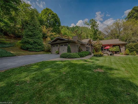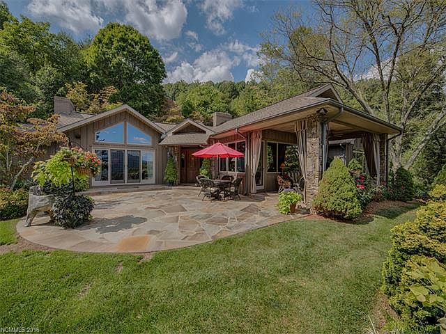 One of a kind! All on one floor. Original house was built in 1970 but was 90-95% redesigned and rebuilt with new roof structure up and out in 2004. Quality throughout with large paneled doors, hardwood floors, two stone fireplaces, high tongue and groove ceilings, designer's kitchen, level, beautifully landscaped yard and astonishing views. No mountain climbing to get to this private hilltop beauty. Come home to nature and enjoy the outside on covered porch and patio. Two masters. Two lots