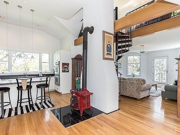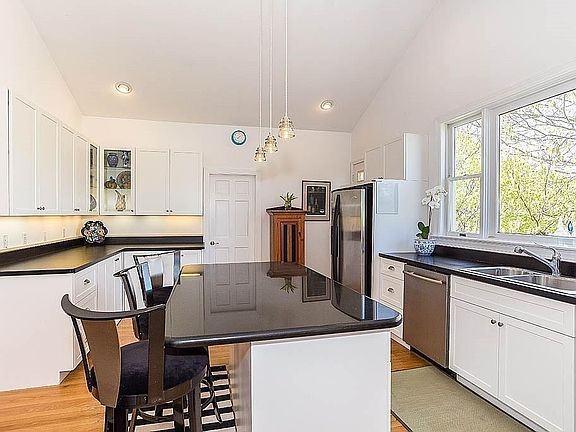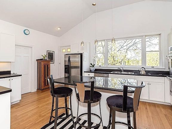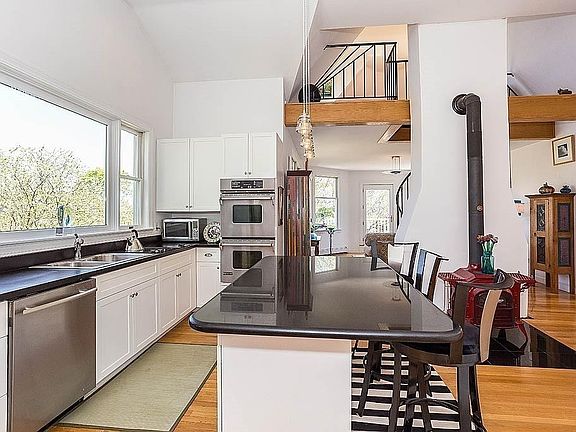 - Kit Dscrp: Flooring - Hardwood, Countertops - Stone/Granite/Solid, Ceiling - Cathedral, Kitchen Island, Open Floor Plan, Exterior Access