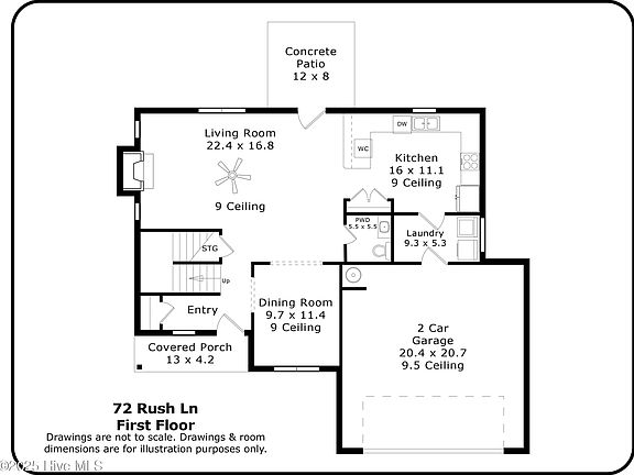 Welcome to 72 Rush Lane! This beautifully crafted 2-story home, built by Precision Custom Homes in 2024, is barely lived in and offers beautiful finishes throughout such as ship lap in the dining room, living room, and primary bathroom, custom wood shelving in the pantry, and gold /brass-colored accents on the bathroom and lighting fixtures as well as cabinet and drawer hardware. Fine custom finishes throughout give the home a polished, cohesive feel. This 4-bedroom, 2.5 bathroom home is located on a half-acre, corner lot and has a fully fenced back yard. The kitchen features soft-close cabinets and drawers, quartz countertops, tile back splash, a custom range hood, and stainless-steel appliances—including a wine/beverage cooler and side-by-side refrigerator. It opens seamlessly to a spacious living room with an electric fireplace, formal dining area, and a 2-story entry foyer. The main level also includes a half bath, laundry room / mud room with a drop zone conveniently located between the kitchen and garage. Upstairs, you will find all four bedrooms and two full bathrooms. The primary suite features a spacious bedroom, two closets—including a large walk-in—and a luxurious bath with a separate soaker tub and shower, along with a heated bidet in the private water closet and two separate vanities. Additional highlights include an Electric Vehicle charger in the garage, Nest thermostats, and security cameras, all of which convey with an acceptable offer.