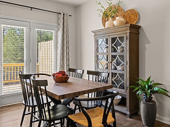 Adjacent to the kitchen, the dining area accommodates a full dining table and opens to the rear deck or patio, ideal for indoor-outdoor living. A conveniently located half bathroom completes the main level.