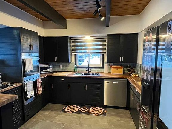 Nestled along the tranquil shores of Cochrane Lakes, this beautifully updated residence offers breathtaking lake views from nearly every room. Thoughtfully designed with timeless character and modern comfort, this home blends warmth, function, and style across all levels. As you enter, you’ll immediately notice the freshly tiled entryway and the bright, welcoming layout that’s perfect for entertaining. To your right, the fully renovated kitchen impresses with new appliances, counters, ducting, and paint, while the adjoining dining area is ideal for family gatherings. The breakfast room flooring has been redone, adding a touch of modern flair, and the formal dining room has been freshly painted. The living room offers a cozy retreat with a floor-to-ceiling brick fireplace, rebuilt and painted shelving, and floor-to-ceiling windows that frame the stunning water views. The home’s wood beams and shiplap detailing—now professionally painted—add character and warmth throughout. Upstairs features five bedrooms, all freshly updated with new carpet (2025) and a fully renovated main bathroom complete with new tile, tub, sink, toilet, and walls. The primary bedroom offers peaceful lake views and space to unwind. The basement is fully finished with a second kitchen, fireplace, large den, and recent updates including new stairway carpet (2025), bedroom paint, and a new vanity in the bathroom—perfect for guests, extended family, or to be used as a legal suite. The list of recent improvements is extensive and includes: * New roof and eavestroughs (2025, previously 2023) * Exterior paint * New front entry deck and side decking with stairs * Replaced upper deck and railing (lower deck ready for completion) * New fencing on both sides of the yard * Driveway resealed * New front yard storage shed * Completely renovated laundry room with new flooring, shelving, and appliances * Half bath renovation * Updated tiled flooring in entry and kitchen * New carpet throughout upper and basement stairways (2025) Outside, enjoy your massive upper deck overlooking Cochrane Lakes, perfect for morning coffee or sunset gatherings. The expansive yard offers privacy, mature landscaping, and a peaceful setting just minutes from the Town of Cochrane. This property combines modern updates, rustic charm, and unbeatable lakefront views—a truly rare opportunity to own a piece of serenity so close to town.