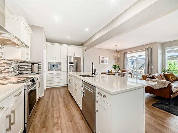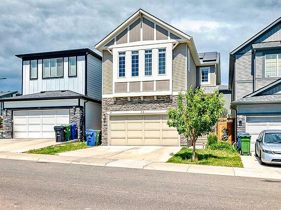 Welcome to this extensively upgraded Morrison built two-storey home, ideally situated in the highly desirable community of Symons Gate. Offering over 2,000 sq.ft. of thoughtfully designed living space, this property blends comfort, functionality, and modern sophistication. The main floor showcases an open-concept layout with 9-foot ceilings, elegant quartz countertops, custom-upgraded cabinetry and surfaces from the time of build, upgraded stainless steel appliances including a chimney hood fan, and a spacious center island,perfect for gatherings and entertaining. Upstairs, you’ll find a generous bonus room, convenient laundry area, two secondary bedrooms, a full 4-piece bathroom, and a primary suite complete with a luxurious 5-piece ensuite and walk-in closet. Recent upgrades further enhance this home’s value and efficiency, including a 4.455 kW solar panel system (2023) to significantly reduce electricity costs, a radon mitigation system for improved indoor air quality, and a Class 4 hail-resistant roof (installed June 2025). The basement development has been started with City-approved electrical and plumbing permits, providing potential for future additional living space. Additional features include central air conditioning, central vacuum, an Aprilaire air filtration system, freshly installed sod, and smart home upgrades such as smart light switches, thermostat, and door/window sensors. Located just steps from the community playground—home to family-friendly activities and seasonal events like outdoor movie nights. This property also offers quick access to shopping, restaurants, medical clinics, schools, and major routes including Stoney Trail and Deerfoot Trail. This move-in-ready home delivers exceptional value in a vibrant, family-oriented neighbourhood.