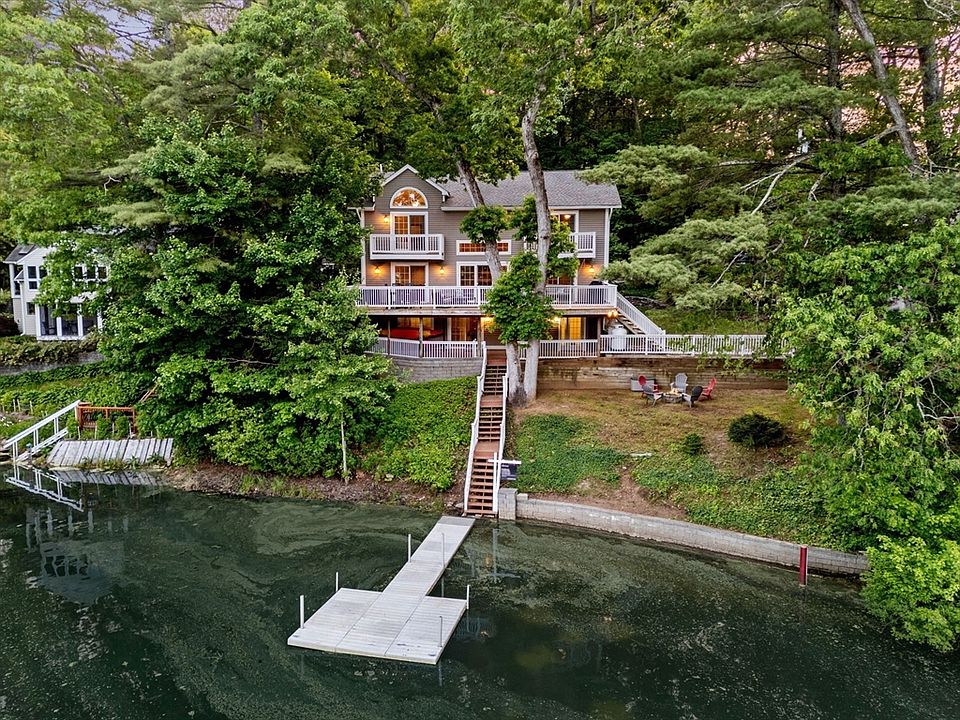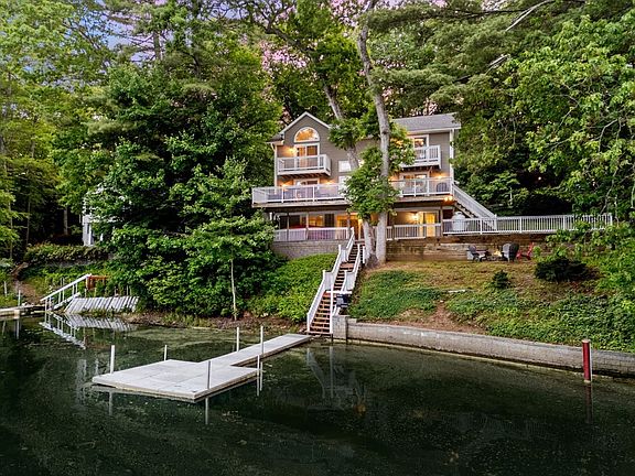 Lakefront living meets everyday comfort in this spacious 3 or 4 bed, 3 bath waterfront colonial on South Pond, a coveted 70' deep fully recreational lake in the desirable town of Sturbridge. Featuring 100 ft of private and direct frontage, this home spans three finished levels, each showcasing gorgeous water views. The open concept main floor features a sunlit living room, dining area, and upgraded kitchen with SS appliances. Two sliders open to a 41 ft deck overlooking the water. A 4th bedroom, full bath, office, and pellet stove complete the 1st floor. Upstairs, the massive primary suite includes an upgraded closet, ensuite bath, 2nd floor laundry, and private deck. Two additional bedrooms and full bath complete the 2nd floor. The finished walkout basement adds even more space and opens directly to water access. Outside, enjoy the flat yard with firepit and easy access to your private dock.