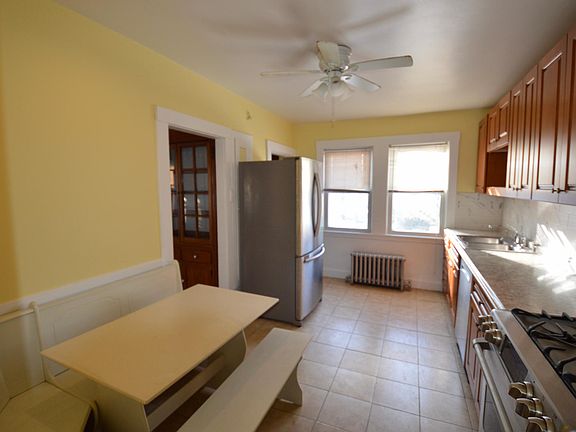 Available now. First floor 2 bed 1 bath with yard, enclosed porch, and deck. This unit is spacious with a living room, dining room, and eat in kitchen. The kitchen is fully applianced including a dishwasher. 2 nice size bedrooms, lots of closets for storage and hardwood floors throughout. Large yard, easy street parking. Free shared laundry on site. Easy street parking, no permit needed. Priced to move quickly. Please call, text, or email for a viewing today. Water and sewer included