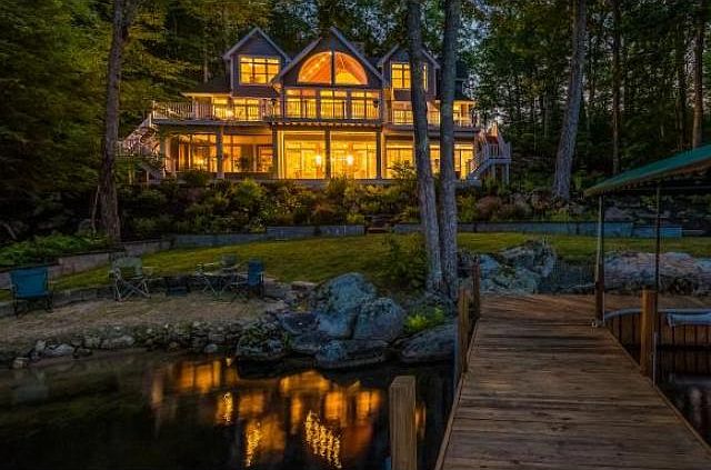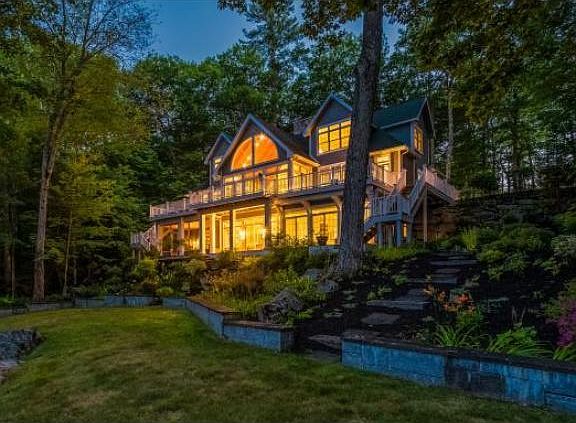 Rare privacy found in this luxurious Lake Winnipesaukee offering. The stunning 4 bedroom lake home is situated on over 19 acres with 809 feet of pristine shore front overlooking Red Hill and the Ossipee Mountain range. The lakeside windows and glass bring the outside in. The vaulted ceilings, field stone fireplaces, entertainment areas and the large Jacuzzi room will provide that feeling of being in a truly special home. Shore front improvements include a covered U-shape dock, perched beach and fabulous gardens. Seeing is believing. By appointment only.