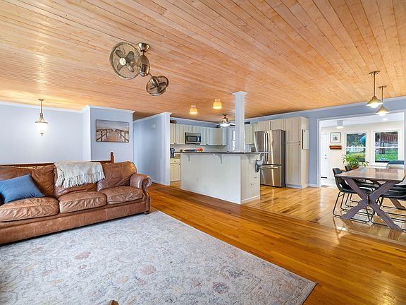 Shows Like New! Contemporary raised ranch loaded with space and style. This beautifully maintained home features a bright, open floor plan ideal for modern living. The living room with fireplace and wood stove insert flows seamlessly into the dining area and updated kitchen, complete with a center island, granite countertops, and newer appliances. A striking light wood ceiling adds warmth and architectural appeal. An additional rear room-perfect for a playroom, office, or sunroom-opens to a new patio overlooking private, wooded grounds with walking trails throughout the 3.7-acre lot. The main level offers three generous bedrooms and a full bath. The lower level includes another bedroom and bath, plus a spacious family room with fireplace and an extra room ideal for a home gym, hobby space, or media room, with a slider leading outside. A detached oversized one-car garage with loft storage provides plenty of extra room for tools, toys, or future workshop space. Enjoy privacy, nature, and modern comfort-all just minutes from Niantic's beaches, shops, and restaurants. Come see this move-in-ready gem today! Finished sunroom and lower level are listed as gross sq. ft on property card. MULTIPLE OFFERS!! Seller requesting all offers in by 5PM on Tuesday, November 4th.