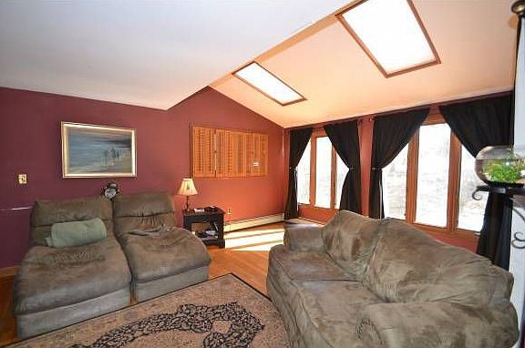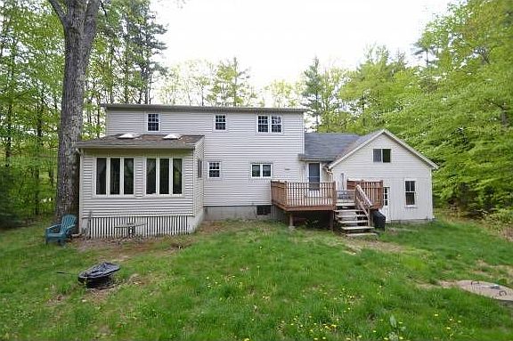 Full Dormered Country Cape with hardwood floors throughout featuring 1st floor with fantastic family room with vaulted ceiling and skylights open to large living room with bay window and brick wood fireplace, spacious fully applianced kitchen with tile floor and island open to formal dining room with wainscoting, chair rail and crown molding, tiled entry with door to back deck and half bath, 2nd floor with front to back master, 2 other bedrooms and updated full bath with tile floor, deck overlooking great backyard and 2 car garage with bonus room above all set on lovely 2.4 acre lot bordered by stone wall with nice backyard in great location with quick access to golf course and 101. Recent improvements include, new windows, vinyl siding, boiler and dry basement system.
