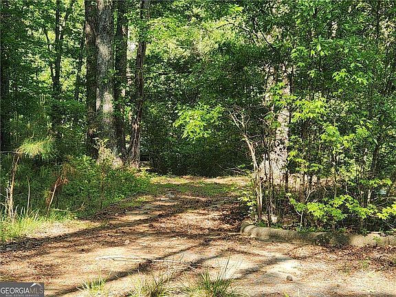 Two acreas on quiet street. Paved driveway leads up to turn around concrete pad that used to have a mobile home. Small barn with room above on the lot. Relatively flat lot at the top of the sloped drivewy. Electric and water available. Septic and Propane in the past. Do not walk up the unsafe steps to the space above the barn. Needs some clearing between the driveway and bar. 1 mile from Sun City Peachtree and 10 miles to Atlanta Motor Speedway.